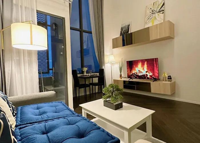 Diese Unterkünfte besteht aus einer Sitzecke und einer Küche, ist mit einer Klimaanlage und einer Waschmaschine ausgestattet und bietet einen Blick auf die Stadt. Das Apartment stellt 1 Bad zur Verfügung. Darüber hinaus gibt es im Badezimmer einen Haartrockner und Handtücher.